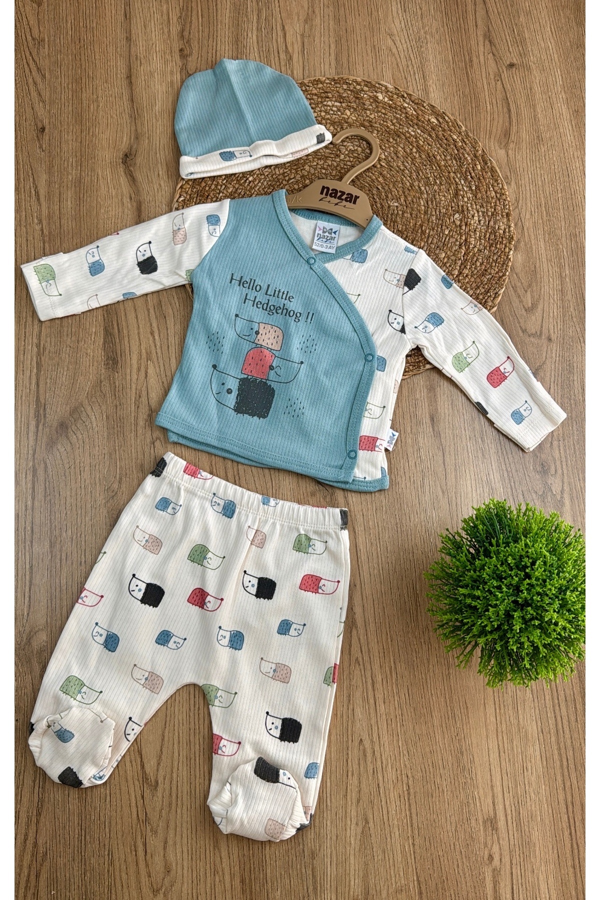 Zıbın, pantolon ve şapkadan oluşan bu takım, bebeğinizin ihtiyacı olan tüm temel parçaları içerir. Esnek kumaşı, bebeğinizin hareket özgürlüğünü kısıtlamazken, yumuşak dokusu gün boyu rahat bir deneyim sunar. 0-3 ay arası bebekler için uygun olan bu takım, hem kız hem de erkek bebekler için ideal bir seçimdir.