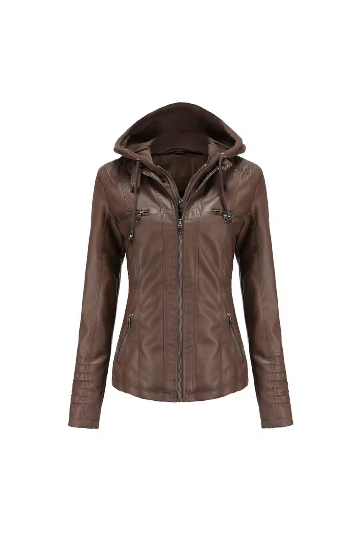Renk: Kahverengi. Kullanıcı Cinsiyeti: Kadın. Kullanıcı Yaş Grubu: Genç, Yetişkin. Boyut: XS, S, M, L, XL. Malzeme: Suni deri. Şekil: Ceket. Desen: Düz. Marka: Belirtilmemiş. Kullanım Alanı: Günlük kullanım. Stil: Motorcu, casual. Kullanım Mevsimi: İlkbahar, Sonbahar, Kış. Fonksiyonları: Giyinme, korunma. Özellikleri: Kapüşonlu, fermuarlı, cepli.
