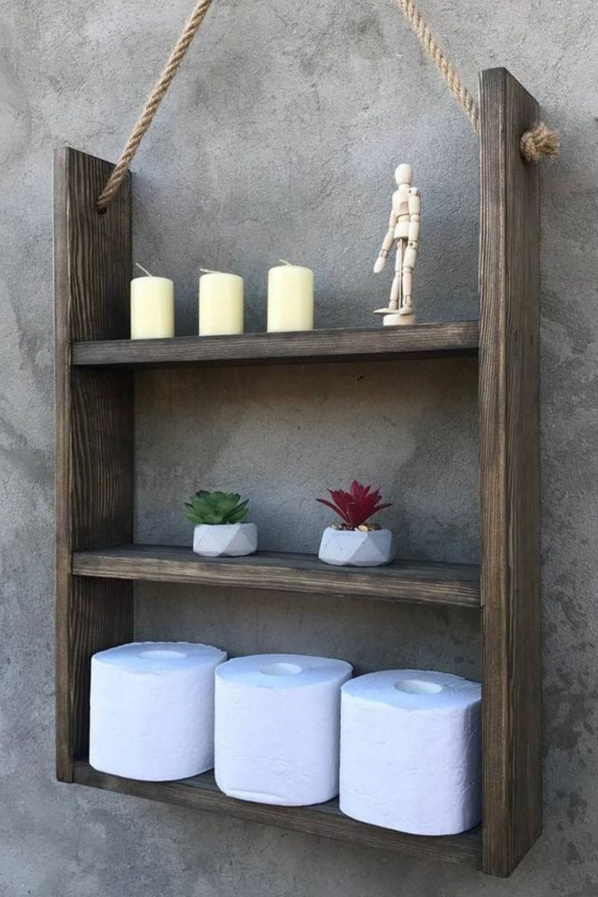 Pempati'nin rustik ve el yapımı bu rafıyla banyonuzu düzenli ve estetik bir şekilde dekore edin.
