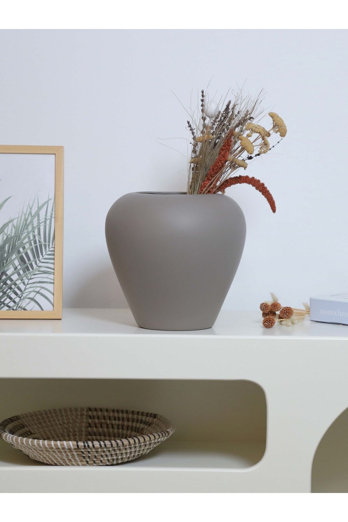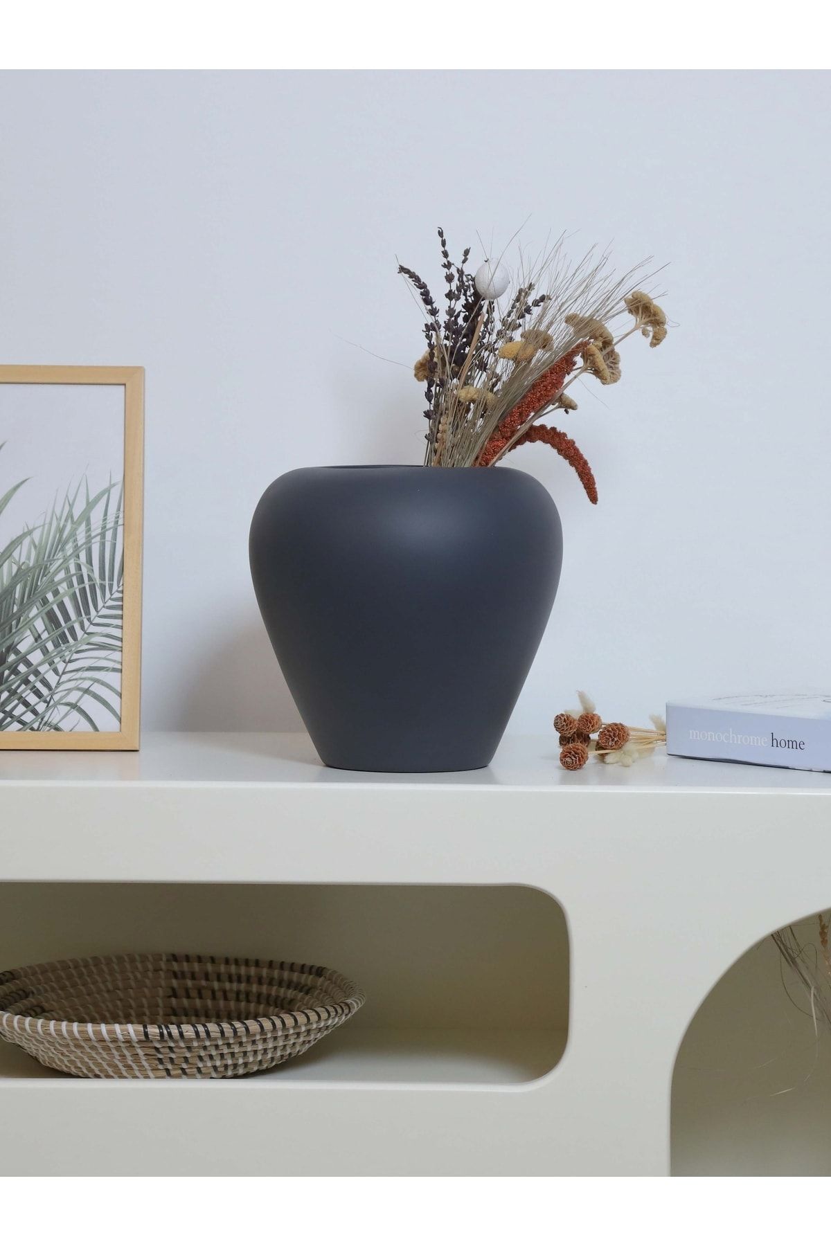 Vazo şeklindeki tasarımı ve düz deseni sayesinde hem en sevdiğiniz çiçekleriniz için şık bir sunum yapabilir hem de dekoratif objelerinizi sergileyebilirsiniz. Gri-mavi tonlarıyla her türlü dekorasyon tarzına kolayca uyum sağlayan bu vazo, evinize modern bir hava katarken aynı zamanda zarafeti de beraberinde getirir. Mat yüzeyi, vazoya sofistike bir görünüm kazandırır. İster tek başına, ister bir grup halinde kullanarak, evinizin atmosferini anında değiştirebilirsiniz.