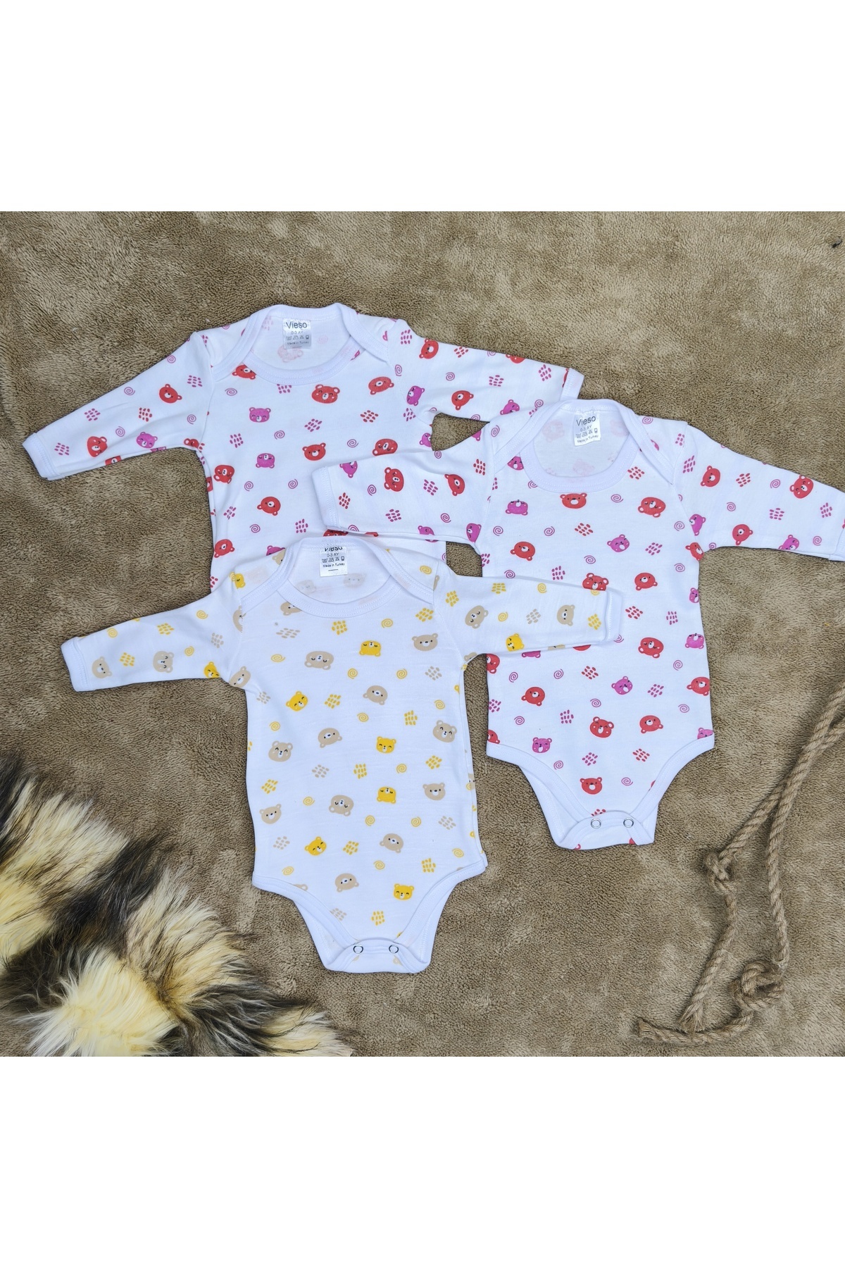 - Yumuşak dokusuyla bebeklerin cildine nazikçe dokunan mikro likralı interlok kumaştan üretilmiştir.; - Uzun kollu tasarımı ile bebeğinizin kollarını soğuktan korurken, rahat hareket etme olanağı sağlar.; - Pratik kullanım için çıtçıt kapama şekli tercih edilmiştir; kolayca giydirme ve çıkarma imkanı sunar.; -Zarf yaka tasarımı, bebeğinizin boynuna nazikçe oturur ve rahat bir kullanım sağlar.; - Düz deseniyle sade ve şık bir görünüm sunarken, unisex koleksiyon parçası olarak hem erkek hem de kız bebekler için uygundur.; - 3'lü paket içeriğiyle avantajlı bir seçenek olup, bebeğinizin ihtiyaçlarını karşılamak için birden fazla parça sunar.; - Casual ortamlarda günlük kullanım için idealdir; evde veya dışarıda rahatlıkla tercih edilebilir.; - Klasik kalıbı sayesinde bebeğinizin vücut hatlarına uyum sağlayarak konforlu bir deneyim sunar.; - Örme kumaşı sayesinde esneklik kazandırarak bebeğinizin hareket özgürlüğünü kısıtlamaz.; - Türkiye'de üretilmiş olup, yerel üretimle desteklenen sürdürülebilirlik detayı